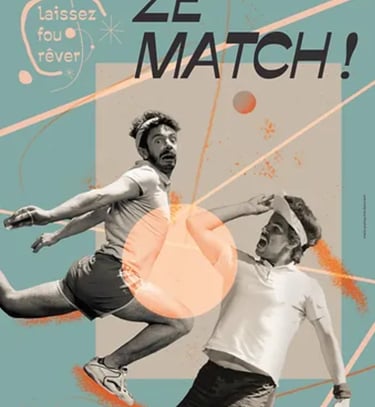 ZE MATCH ! offre un univers burlesque et clownesque, entre mime et acrobatie, un match de tennis où les règles débordent dans l'espace public.